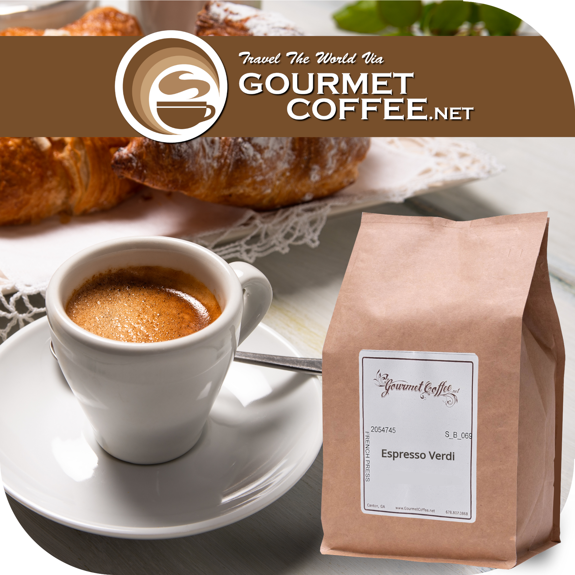 GourmetCoffee.net's Espresso Verdi features an abundance of sweetly strong espresso, ideal for cappuccinos and lattes. If you are looking for something that will have a balance of strength and flavor, without the bitterness, the Espresso Verdi is the ultimate coffee experience.